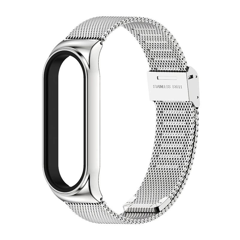 Металлический ремешок для фитнес-браслета Xiaomi Mi Band 3/4/5/6, Серебристый (Миланская петля)