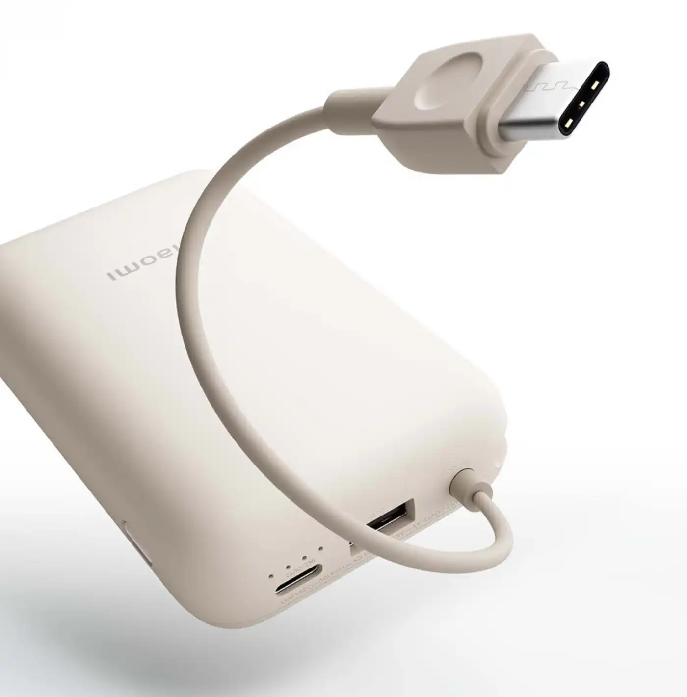 Внешний аккумулятор оснащен встроенным кабелем для быстрой зарядки Type-C, который упрощает пользование, облегчая зарядку электронных устройств и самого внешнего аккумулятора.
