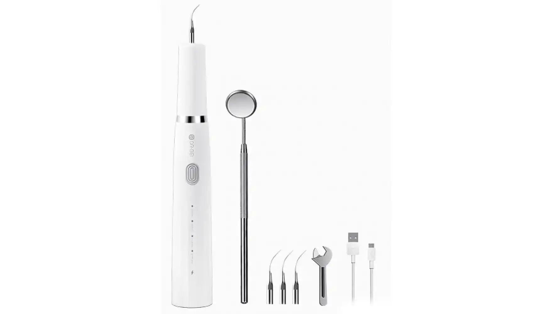 Скалер оснащён LED-подсветкой для удобства использования, в комплект входит медицинское зеркало на длинной ручке.